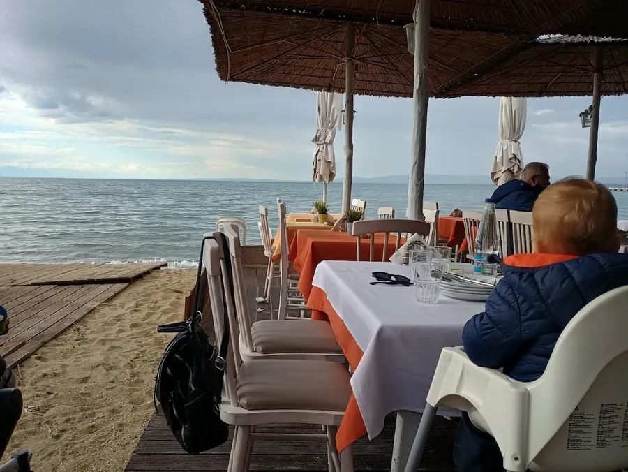 The beaches here are long and wide, with calm water and plenty of shade from beach bars and tamarisk trees. The promenade at Nea Michaniona is wide and completely flat — easy for strollers and ideal for evening walks with a baby who won't settle.